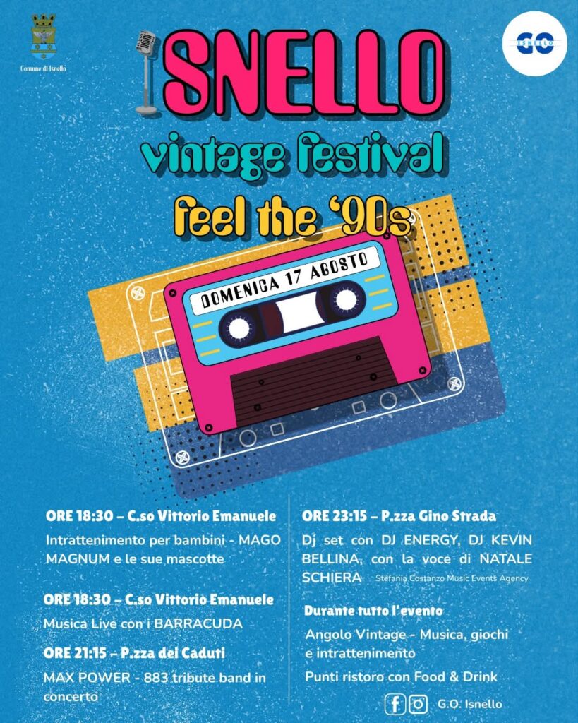 Domenica 17 agosto 2025 a Isnello si terrà l’Isnello Vintage Festival: Feel the ‘90s, un evento interamente dedicato alla musica, alla moda e all’atmosfera degli anni ’90.La manifestazione animerà il centro storico con concerti, spettacoli, stand a tema e momenti di intrattenimento per tutte le età, trasformando il paese in un viaggio nel tempo.Organizzazione a cura dell’Associazione Culturale G.O. Isnello .