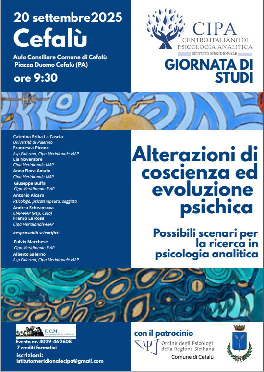 Sabato 20 settembre la psicologia analitica di Jung incontra la città di Cefalù. In aula consiliare del palazzo di città in piazza duomo, una giornata di studi, inizio ore 9:30.