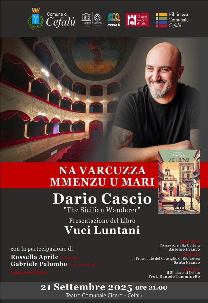 Domenica 21 settembre al Teatro Comunale Salvatore Cicero, ore 21:00 spettacolo dal titolo “Na varcuzza mmenzu u mari”, che intreccia parole, musica ed emozioni, due brani del libro “VUCI LUNTANI” e una serie di “Sessanta SeCunti” di Dario Cascio, “The Sicilian Wanderer”.