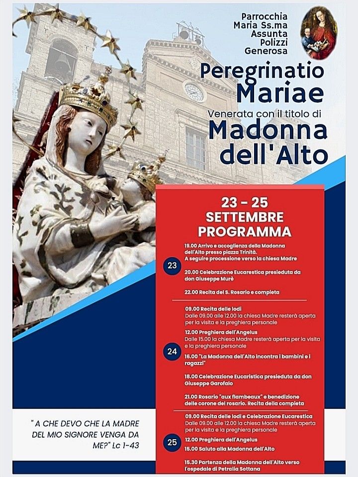 Dopo Castellana Sicula, Calcarelli e Nociazzi,il pellegrinaggio della Madonna proseguirà oggi a Polizzi Generosa, paese natale del beato Guglielmo Gnoffi fondatore del Santuario, dove sosterà nei giorni 23 e 24 settembre 2025.