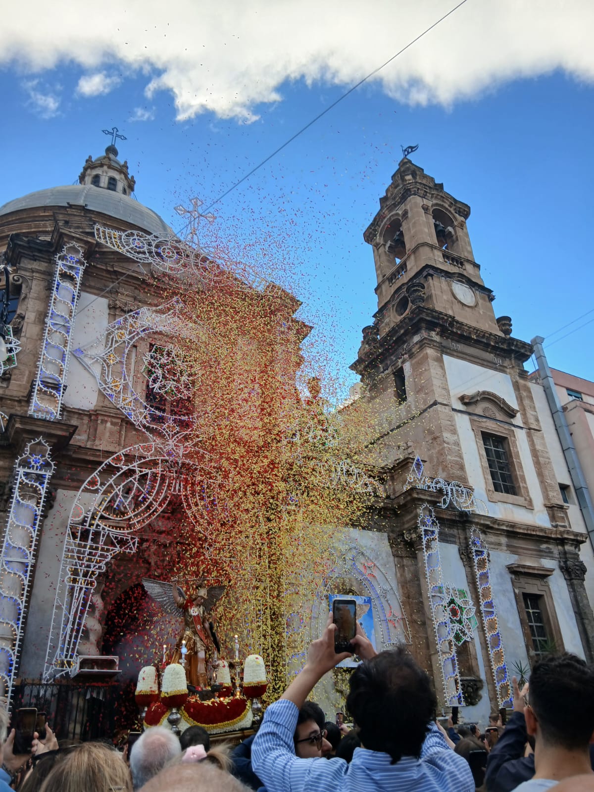 Sfilano le confraternite con i loro simboli di fede, la banda musicale intona note a festa e le luci delle luminarie sfavillano sfarzose, decorando di bello anche ciò che di brutto c’è intorno.Si è conclusa la settimana di preghiera con l’uscita solenne di San Michele nel quartiere Ballarò, in quella chiesa bellissima che si trova in una piazza, quasi sempre riempita da oggetti del riuso, specialmente durante il mercato della domenica.