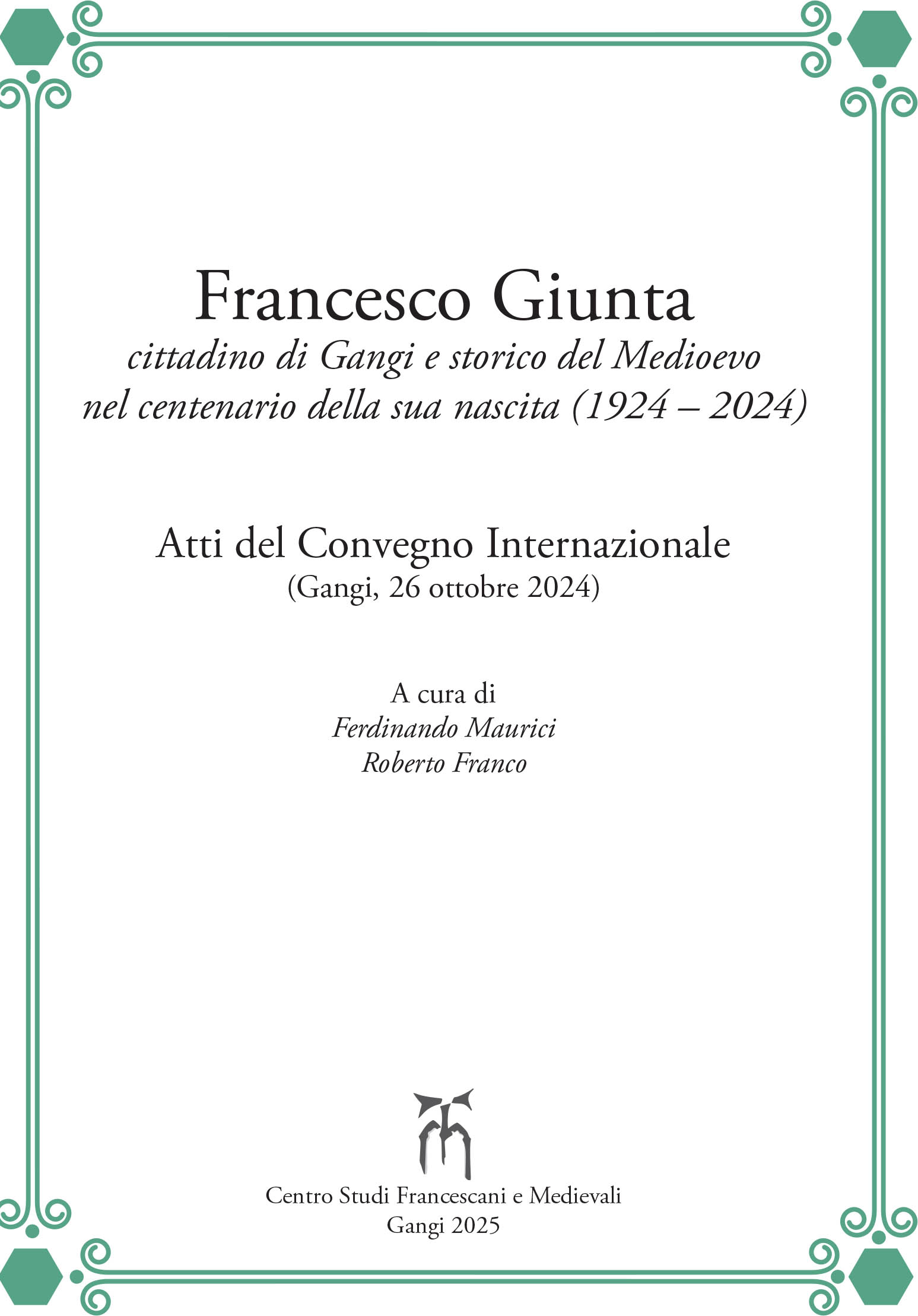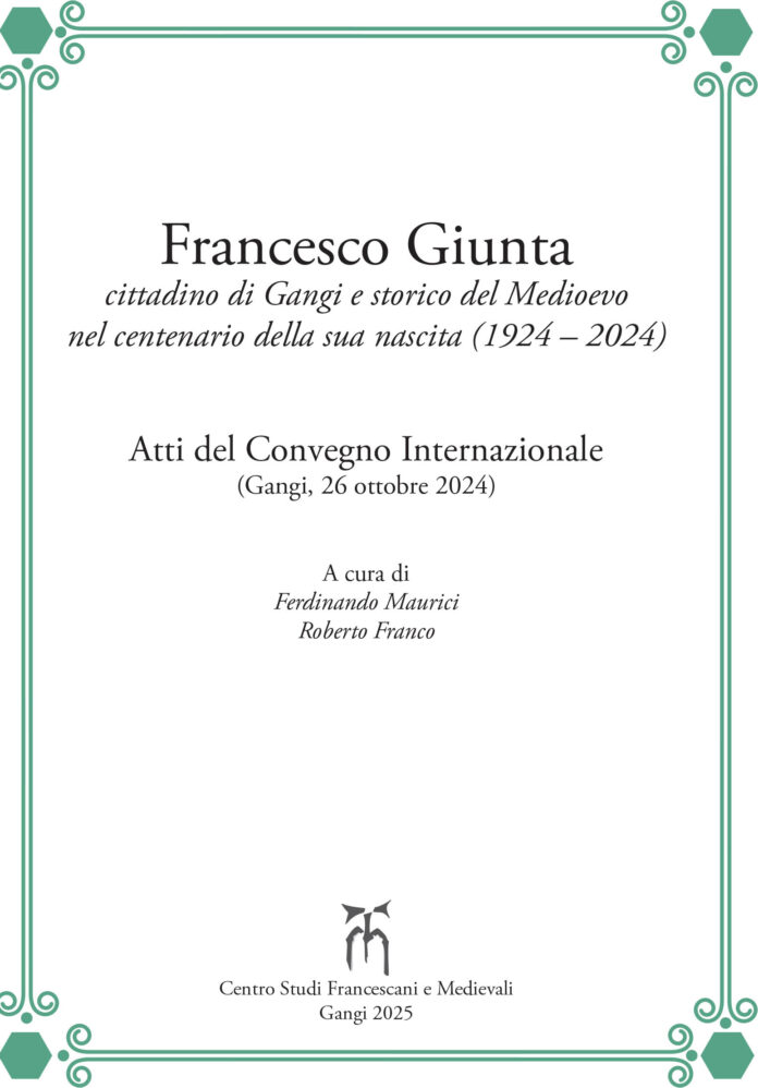 È stato recentemente pubblicato il volume che raccoglie gli Atti del Convegno Internazionale “Francesco Giunta cittadino di Gangi e storico del Medioevo nel centenario della sua nascita (1924–2024)”, svoltosi lo scorso 26 ottobre 2024 a Gangi , presso la sede istituzione di Palazzo Bongiorno.