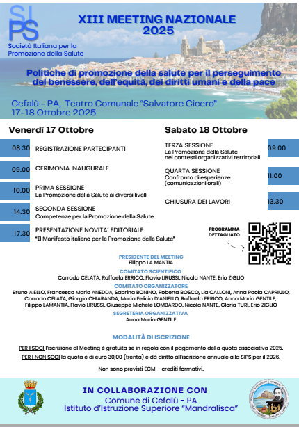 Si svolge a Cefalù nelle giornate del 17 e 18 ottobre il XIII meeting nazionale della Società Italiana Promozione Salute.