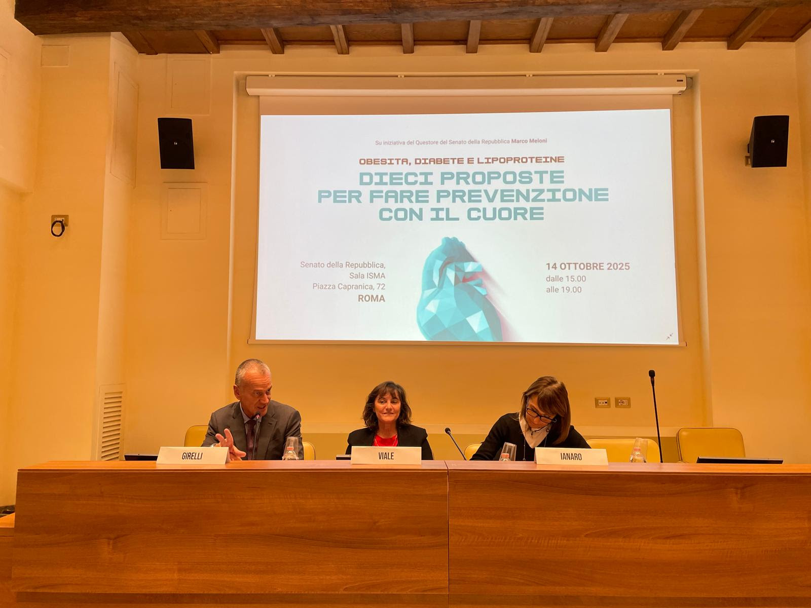 È questo il messaggio lanciato nel convegno “Obesità, diabete e lipoproteine. Dieci proposte per fare prevenzione con il cuore”, organizzato da Motore Sanità su iniziativa del Questore del Senato della Repubblica, Marco Meloni. Un’occasione di confronto, quella di ieri presso la sala dell’istituto di Santa Maria in Aquiro presso il Senato, che ha visto confrontarsi esperti, rappresentanti delle istituzioni e delle associazioni di pazienti, tutti concordi sulla necessità di passare dalle parole ai fatti, adottando azioni concrete come quelle contenute in un decalogo presentato dall’Intergruppo parlamentare per la prevenzione e la riduzione del rischio, presieduto dall’onorevole Gian Antonio Girelli, insieme con l’Intergruppo “sulle malattie cardio, cerebro e vascolari” presieduto dalla senatrice Elena Murelli.