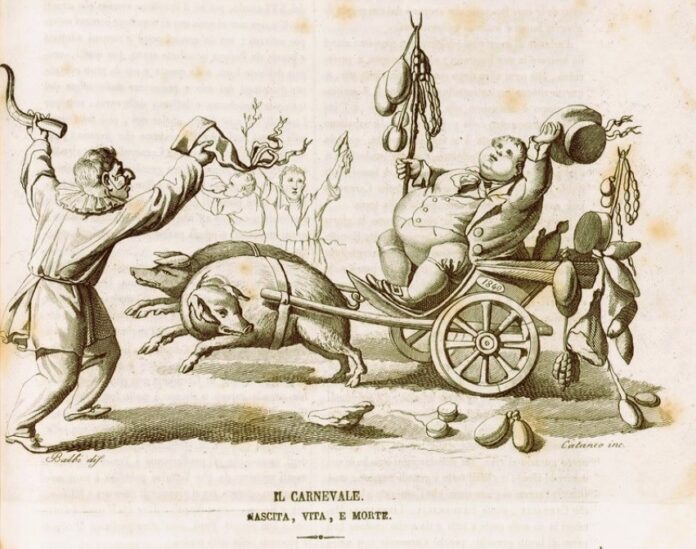 Ph. Foto tratta da Il Carnevale – Nascita – Vita – e Morte. L’Omnibus Pittoresco, 1840.