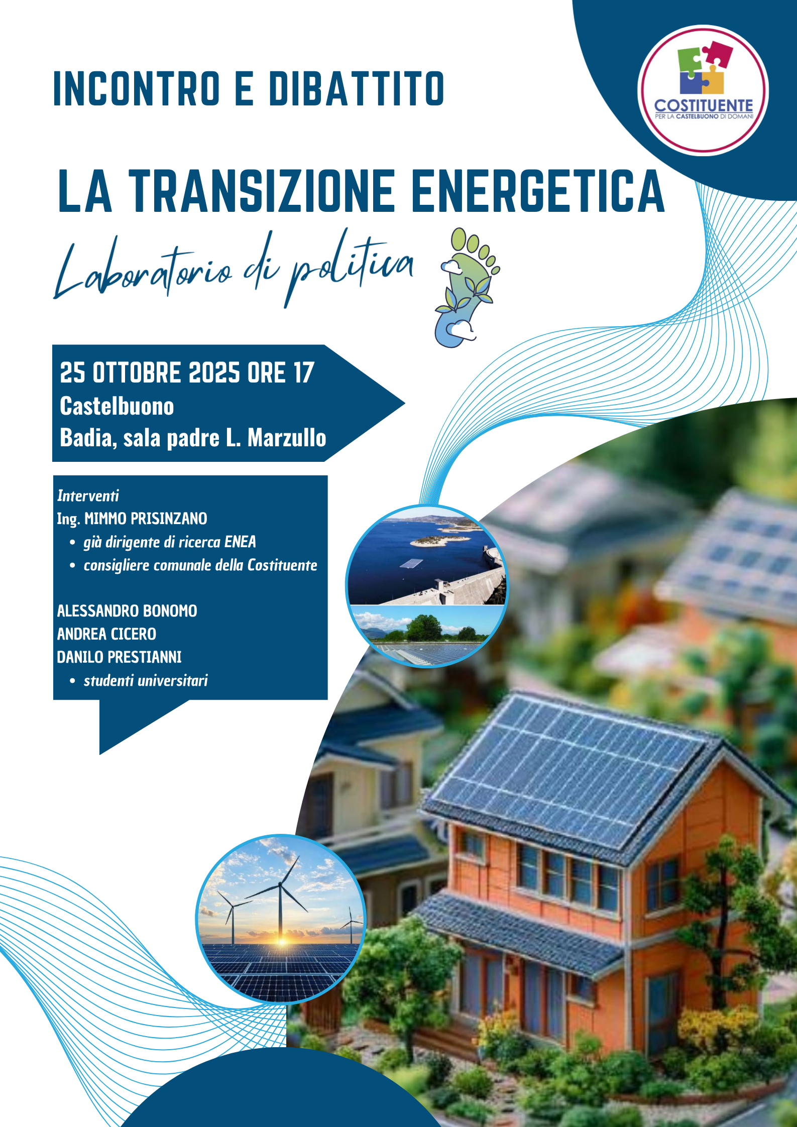 Sabato 25 ottobre 2025, si parlerà della “transizione energetica” esaminando: