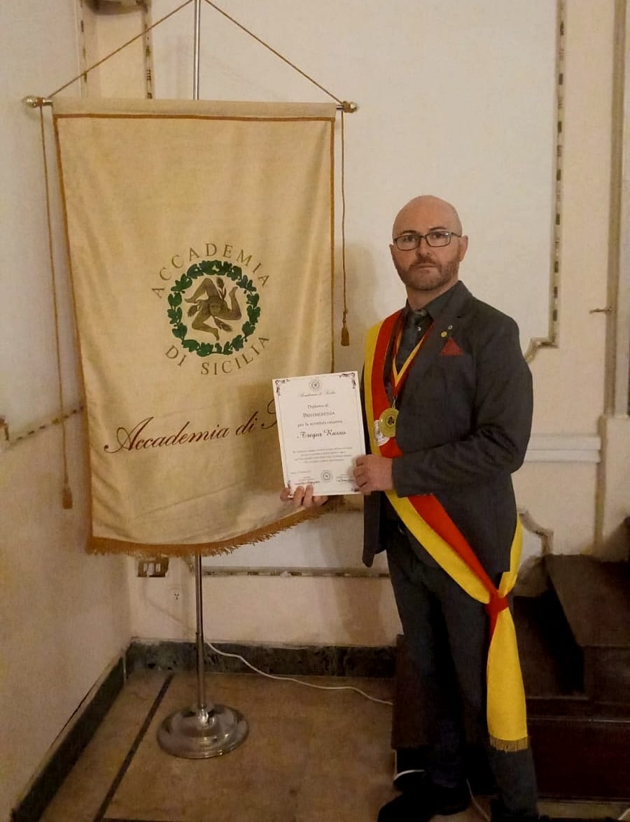 Allo scrittore, compositore e studioso Tregor Russo è stato conferito il “Diploma di Benemeranza” per la scrittura nell’ambito della cerimonia del “Premio Internazionale Morgantina” che si è tenuta ieri sera a Palermo all’interno dei locali del Circolo dell’Esercito Italiano. La manifestazione, organizzata dall’Accademia di Sicilia, ha permesso di dare lustro a chi, in questi anni, ha contribuito a diffondere, promuovere e valorizzare la Sicilia e le sue bellezze multidisciplinari. Tregor Russo è stato premiato dalla Presidenza del Senato Accademico di Sicilia per la sua nuova pubblicazione, la quinta, dal titolo “Sicilia lo specchio dell’anima.