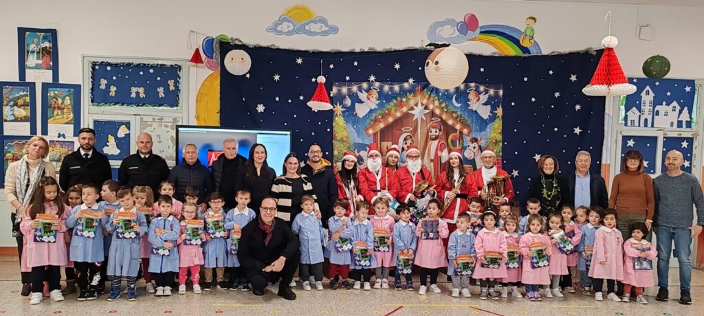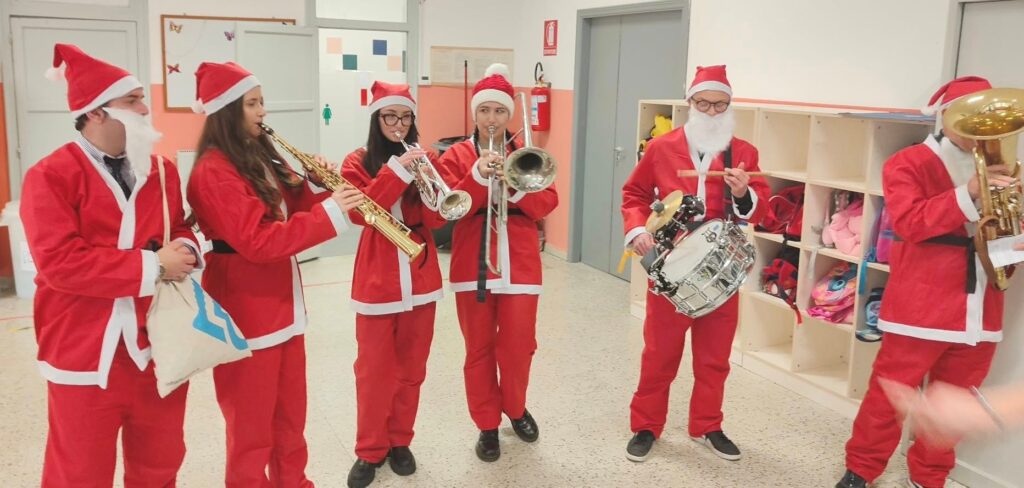 Tutto è cominciato giorno 16 dicembre quando l’Amministrazione comunale, accompagnata da un gruppo di musicisti (appartenenti all’A.C.M. “Apollonia”), ha augurato buone feste agli alunni della Scuola dell’infanzia, primaria e secondaria di primo grado e a tutto il personale della scuola.I musicisti, avvolti nei vivaci costumi di Babbo Natale, hanno trasformato ogni brano in un momento di gioia condivisa.I giovani sorrisi, insieme al calore della musica, hanno creato un’atmosfera unica fatta di tradizione, comunità e festa.