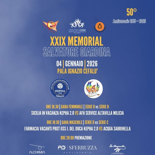 XXIX Memorial Salvatore Giardina – 4 gennaio 2026 – Pala Ignazio Cefalù