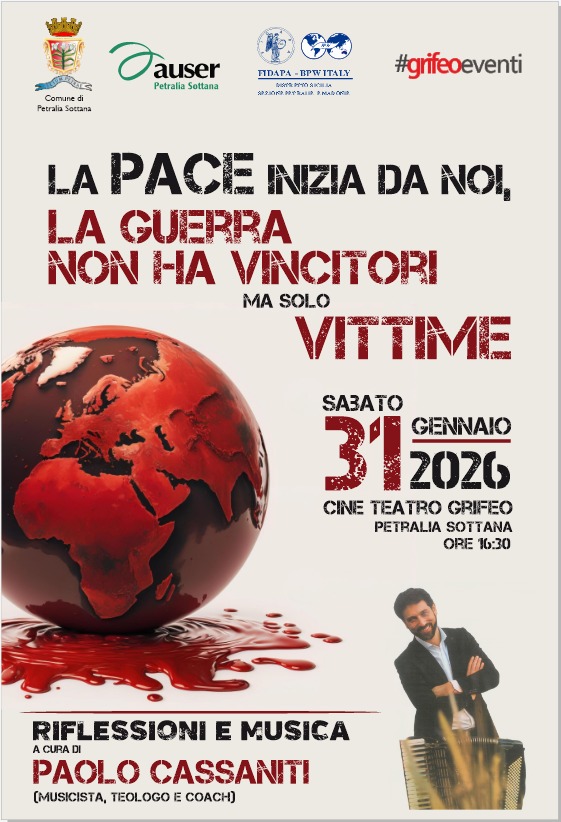 Oggi pomeriggio SABATO 31 GENNAIO alle ore 16.30 presso il Cine Teatro Grifeo di Petralia Sottana è in programma un evento con Riflessioni e Musica a cura del musicista, teologo e coach Paolo Cassaniti.