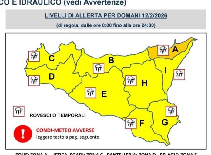 La Protezione Civile Sicilia ha diramato un allerta GIALLA su tutta la Sicilia, ARANCIONE nella provincia di Messina.