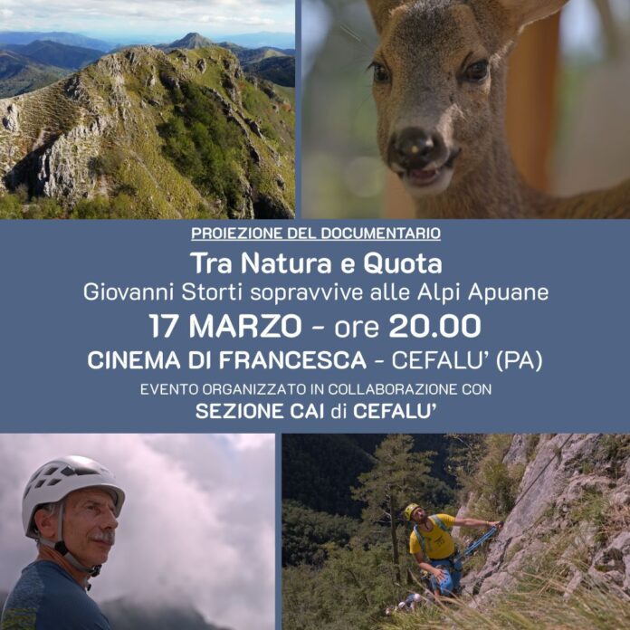 Martedì 17 marzo, ore 20:00, a Cefalù, cinema Di Francesca, a cura della sezione del Club Alpino Italiano, viene proiettato il documentario “Tra natura e quota”.Regia di Manuel Zarpellon, Giorgia Lorenzato. Un film con Giovanni Storti (di Aldo, Giovanni e Giacomo). Genere Documentario, – Italia, 2025, durata 70 minuti. Uscita cinema lunedì 19 maggio 2025 distribuito da Cineblend.In un viaggio virtuale con i propri followers per percorrere la via ferrata più antica d’Italia, Giovanni Storti ci porta sulle Alpi Apuane, tra biodiversità e sicurezza in montagna. Un’occasione per scoprire con ironia un territorio selvaggio e riflettere sui problemi che ne minacciano la conservazione. Realizzato in collaborazione con il Club Alpino Italiano, vuole offrire uno strumento che, con il giusto equilibrio fra leggerezza e profondità, aiuti il pubblico a riscoprire la magia della biodiversità nelle nostre montagne, ma anche a prendere consapevolezza del delicato tema della sicurezza in montagna soprattutto in questo momento di grande mutamento per il territorio.