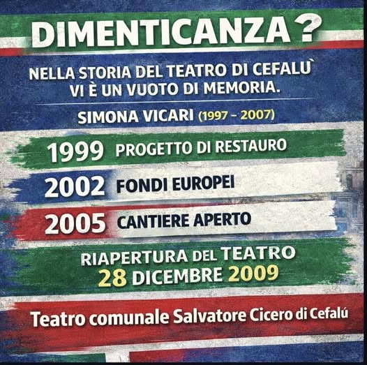 vale la pena ricordare un passaggio istituzionale importante che completa la ricostruzione storica.Nel racconto della rinascita del teatro manca infatti il riferimento al ruolo amministrativo svolto da Simona Vicari, sindaca di Cefalù dal 1997 al 2007.