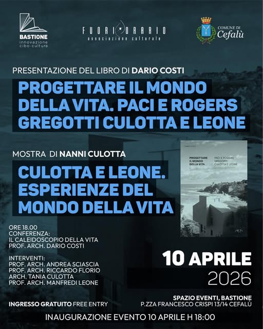 Venerdì 10 aprile 2026, ore 18, presso lo Spazio Eventi Bastione, a cura dell’associazione Fuori Orario e del Comune di Cefalù viene presentato il libro di Dario Costi (Autore), Tania Culotta (Collaboratore), Manfredi Leone (Collaboratore), Nanni Culotta (Fotografo):