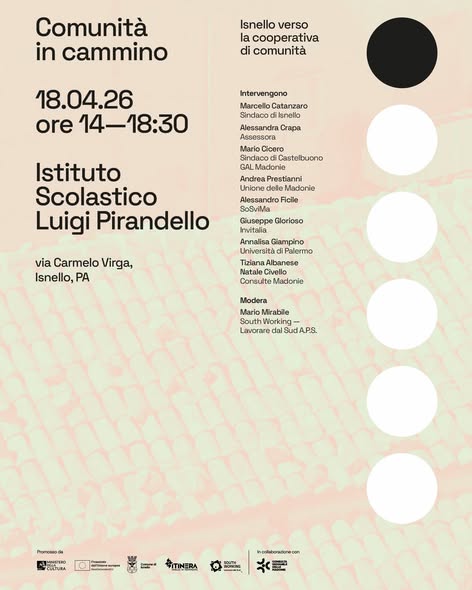 L’iniziativa è promossa dal Comune di Isnello in collaborazione con l’associazione South Working – Lavorare dal Sud APS, nell’ambito del progetto “ITINERA – Isnello in Movimento”, finanziato dal Min. della Cultura con fondi PNRR (Bando Borghi – Linea B, per un investimento complessivo di circa 1,6 milioni di euro.