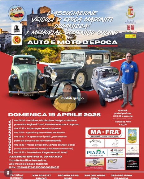 Domenica prossima 19 Aprile è in programma sulle Madonie un evento speciale per ricordare, celebrare e condividere la passione per i motori di un uomo che ha lasciato il segno Mimmo Gulino: un raduno di auto e moto d’epoca imperdibile per appassionati, curiosi e amanti delle tradizioni.