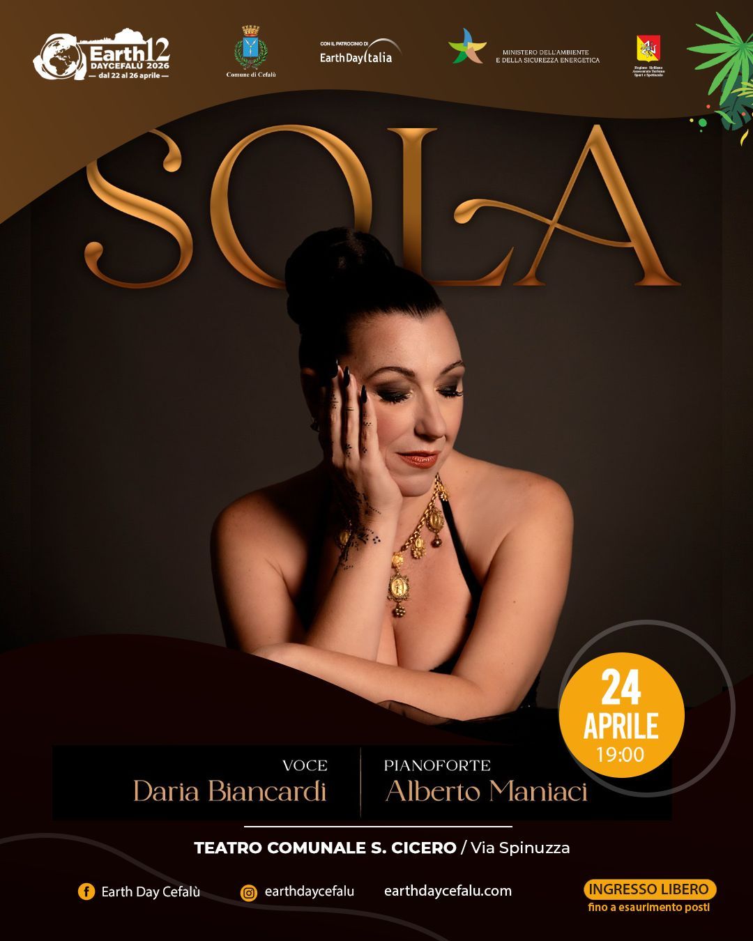Nell’ambito dell’Earth Day Cefalù 2026, presso il teatro S. Cicero lo scorso 24 Aprile, è stato “regalato” al pubblico uno spettacolo musicale che ha avuto come protagonista Daria Biancardi, una straordinaria artista palermitana che già in precedenza aveva onorato la città normanna con la sua mirabolante voce e presenza.
