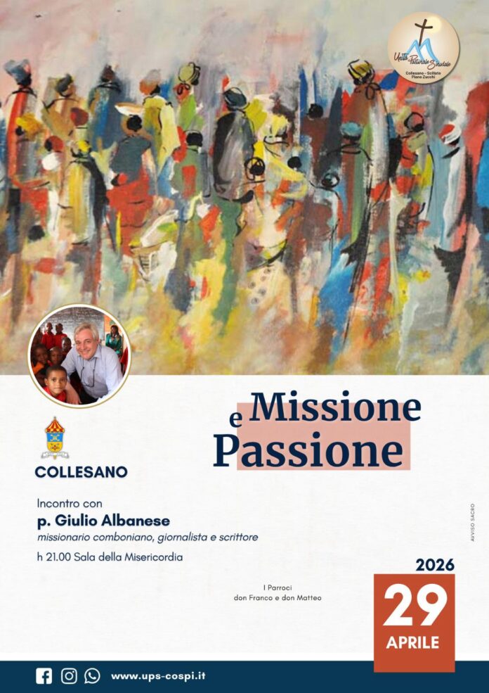 Padre Giulio Albabese, missionario comboniano, giornalista e scrittore, sarà con noi e per noi a Collesano mercoledì 29 aprile alle ore 21:00 presso la Sala della Misericordia.